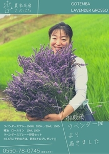 それぞれに応じたように出す成分があり、その理由はいまだ解明されてないそうですが、農家の方にお話を聴くととても勉強になります。学問で解明されている部分と、畑で長年、手で触れていると未だに学問では説明できないような不思議な部分。私たちも植物の賢さやチカラを取り入れてみたいものです。私自身、御殿場のオーガニックラベンダースプレーの作成をサポートしています(農家民宿このはな)。実際に畑に入り、ラベンダーの成分抽出からサポートしており天然由来の香りのファンの1人でもあります。